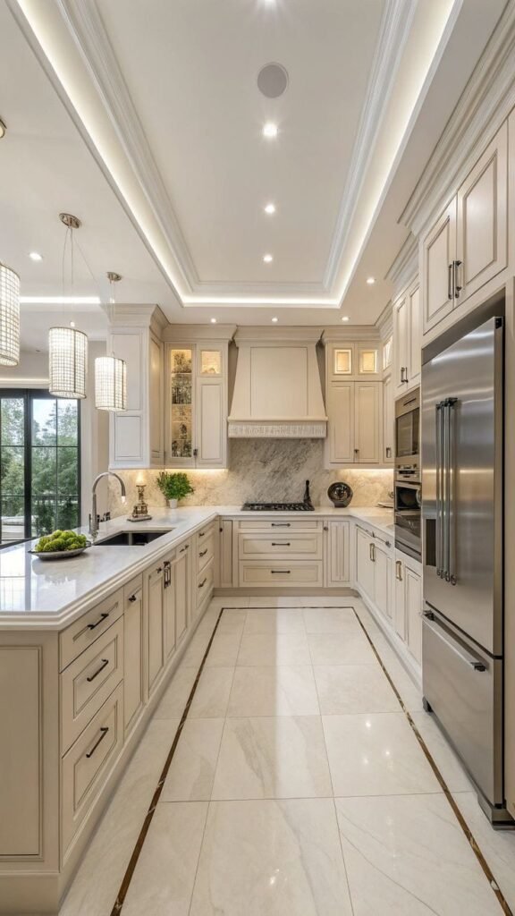 - اختيار الخامة والألوان: يتم اختيار نوع الألمنيوم أو الخشب، ولون الواجهات، ونوع الأسطح (جرانيت، كوارتز، رخام).